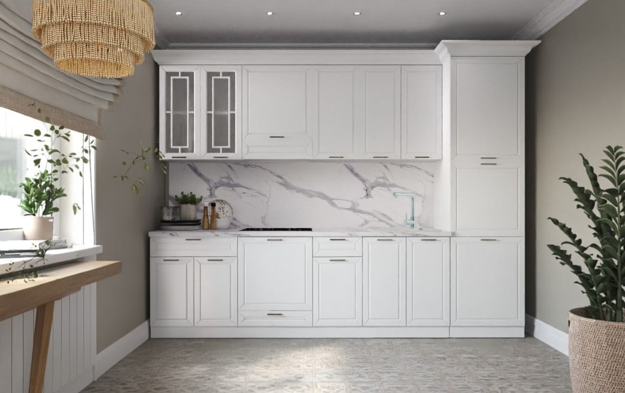 Цвет фасадов: Чистый белый — визуально расширяет пространство, делает интерьер светлым и воздушным.
