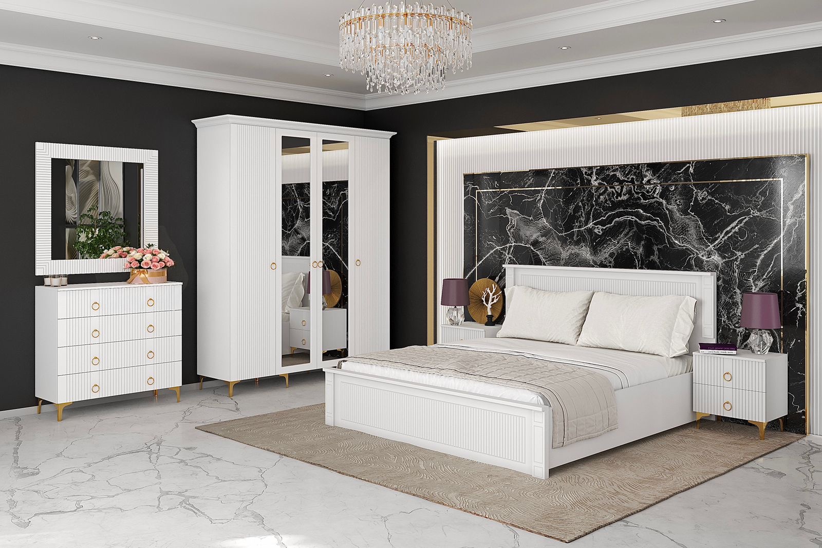 Эта спальня станет прекрасным дополнением вашего интерьера, сочетая современный дизайн и практичность!