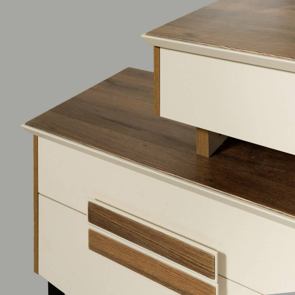 • Туалетный стол: Ш 1593 × Г 463 × В 1596 мм — просторная рабочая поверхность и удобное зеркало для утренних и вечерних ритуалов
